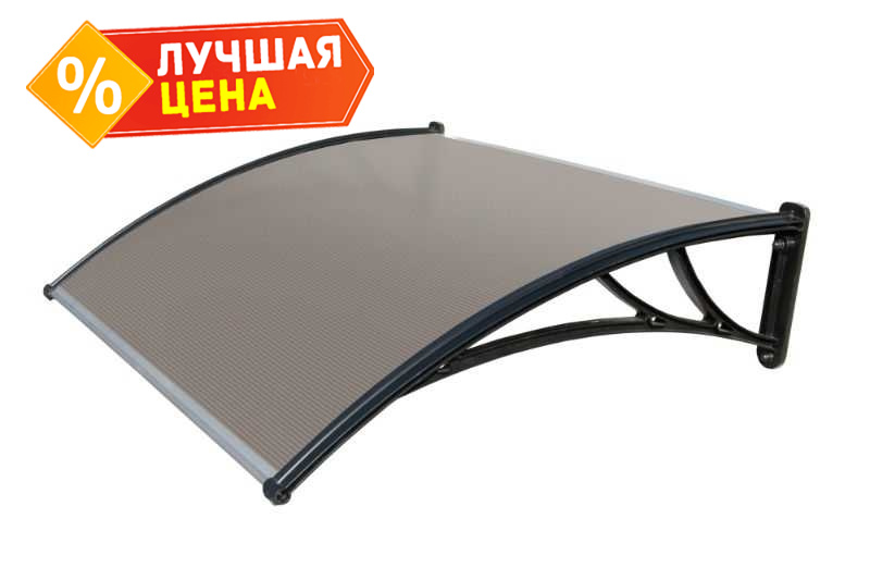 Козырьки Krovent из поликарбоната 1500х930х280 бронзовый (черный кроншт)