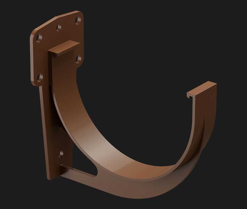 Предназначен для крепления желоба на кровлях с лобовой доской, либо в комплекте с удлинителем на кровлях без лобовой доски