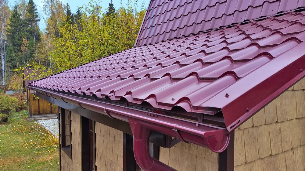 Металлочерепица Grand Line Kamea (Камея) 0,5 GreenCoat Pural Matt BT RAL 3005 Красное вино