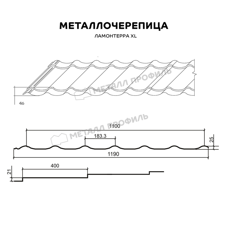 Металлочерепица Металл-Профиль Ламонтерра XL 0,4 Полиэстер RAL 8017 Коричневый шоколад