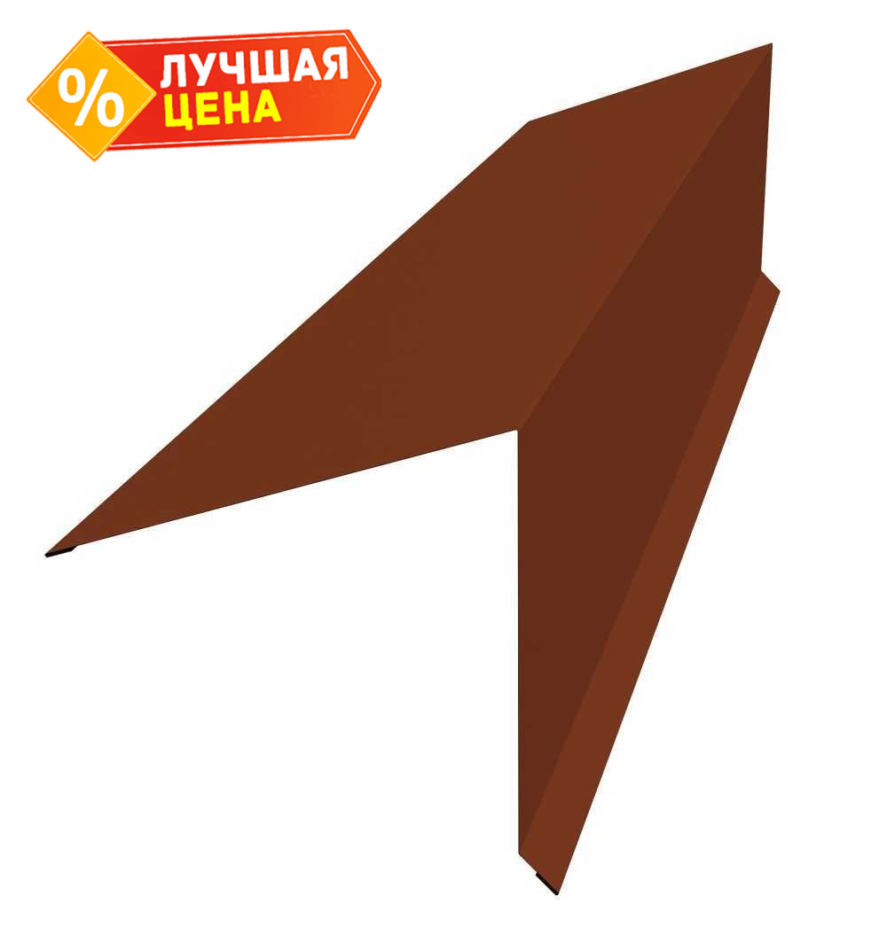 Планка конька односкатной кровли Grand Line 180x160 0,5 Satin с пленкой RAL 3009 оксидно-красный