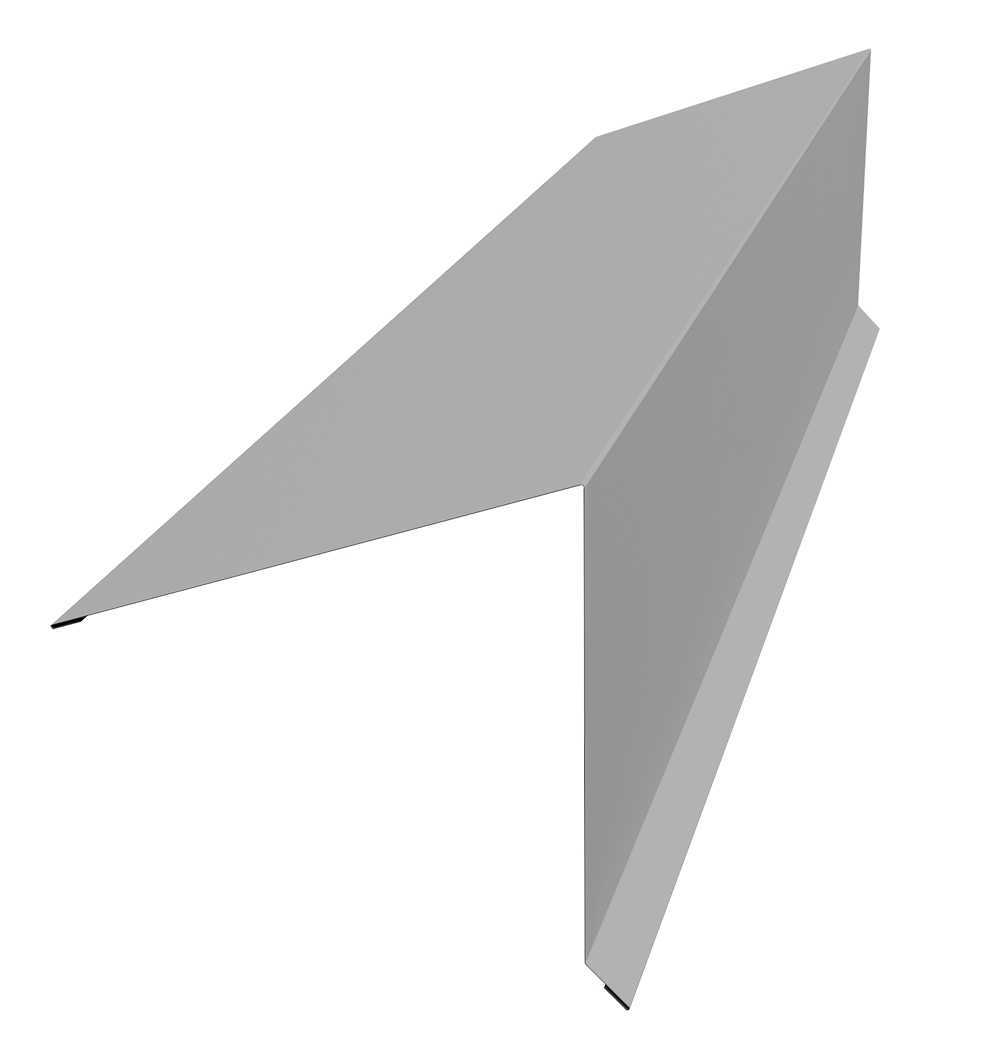 Планка конька односкатной кровли Grand Line 180x160 0,5 Satin с пленкой RAL 9006 бело-алюминиевый