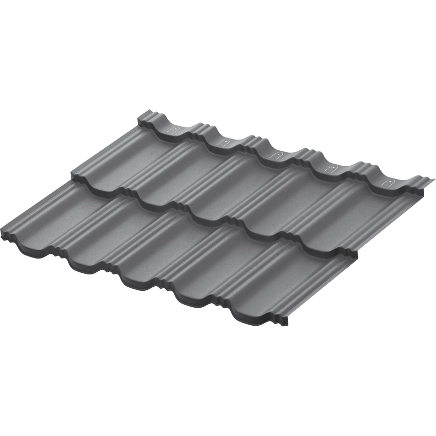Металлическая модульная черепица Гётеборг Имеет уникальный современный профиль. Ключевым преимуществом металлической модульной черепицы AQUASYSTEM является скрытое крепление листов к обрешётке, что позволяет добиться непревзойдённой надёжности кровли и повышенной эстетики. Увеличенная высота ступени (до 30 мм) придаёт повышенную жёсткость и более объёмный внешний вид кровле.