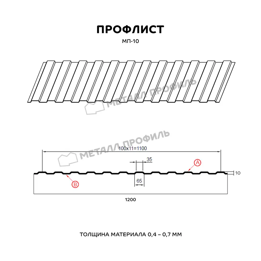 Профлист Металл Профиль МП-10 0,65 Цинк Бесцветный | B