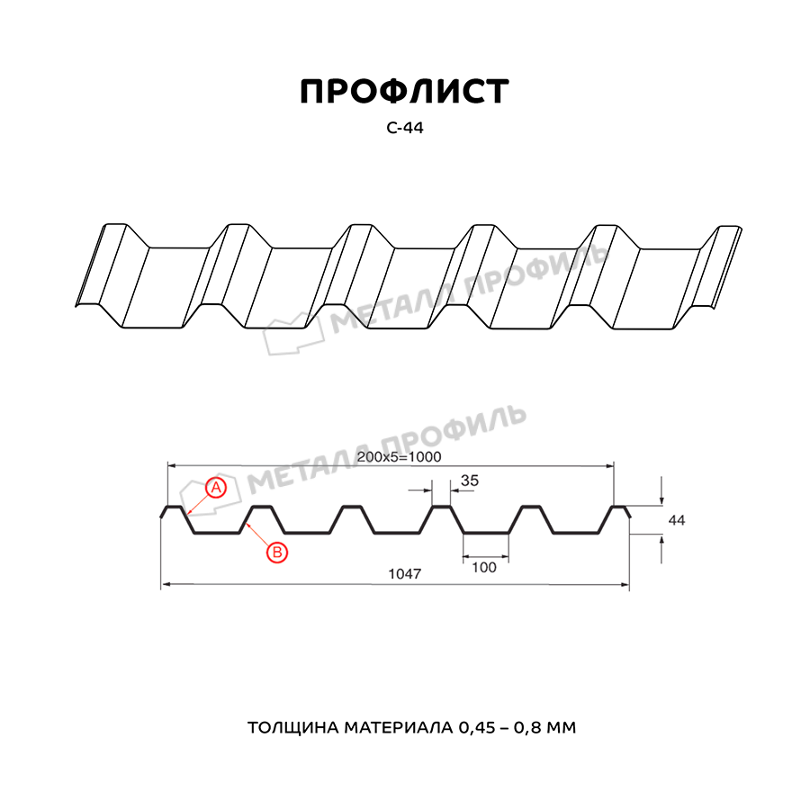 Профиль С-44 обладает прочностью и долговечностью, что делает его идеальным выбором для кровли и фасадов зданий.
