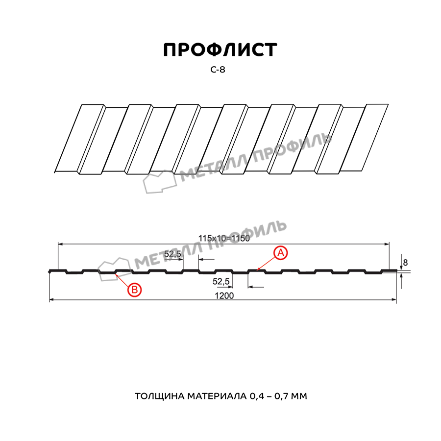 Профлист Металл Профиль С-8 0,45 Полиэстер RAL 3009 Красная окись | B
