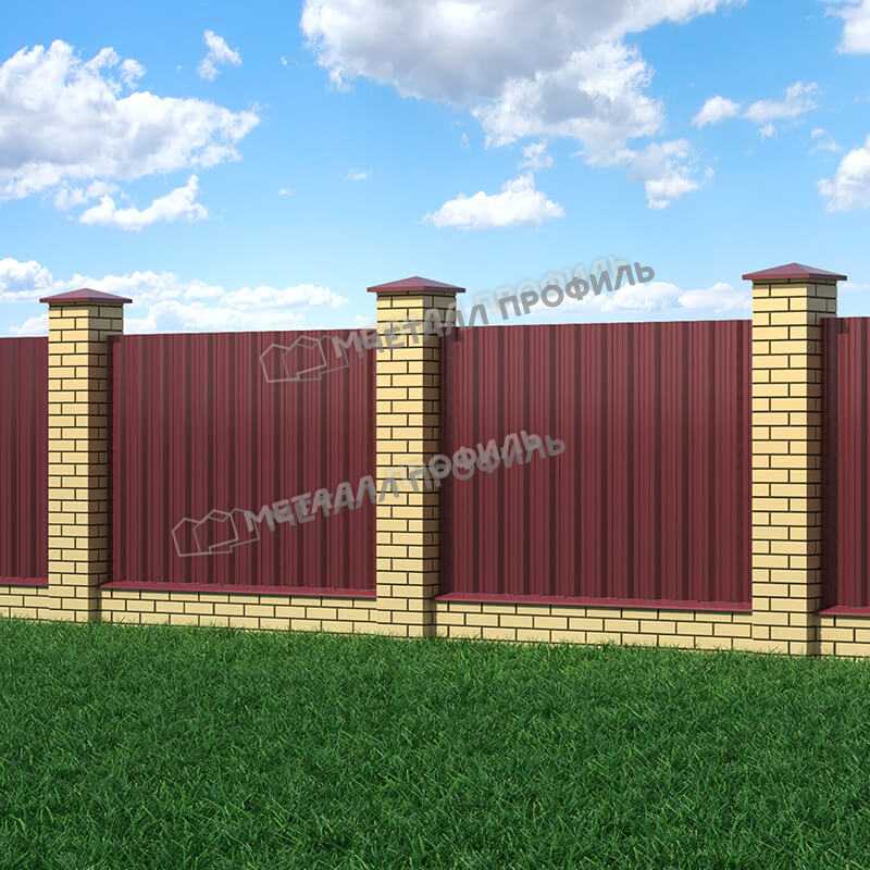 Профлист изготовлен из металла толщиной 0.45 мм, что обеспечивает ему прочность и долговечность. Он покрыт полиэстеровой краской RAL 3005 Красное вино, которая придает ему эстетичный и стильный вид.