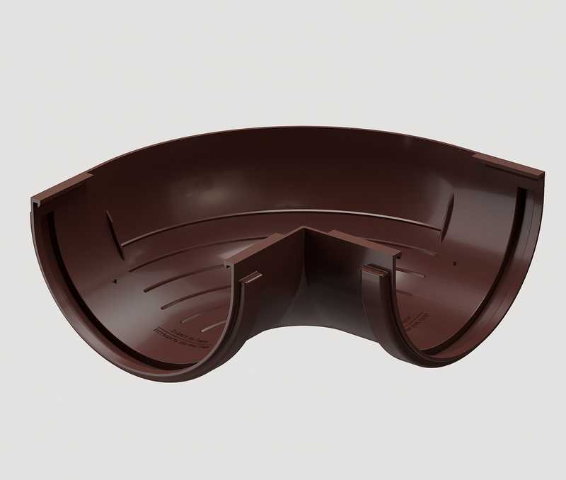 Угловые элементы устанавливаются на внешних углах кровли и предназначены для соединения желобов.